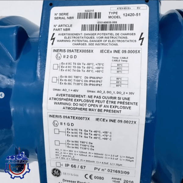 ترانسمیتر سطح دیسپلیسری Dresser 12400 یک تجهیز صنعتی است که بر اساس اطلاعات روی برچسب، به نظر میرسد یک دستگاه اندازهگیری یا کنترل مانند ترانسمیتر یا کنترلکننده سطح باشد.. این تجهیز با طراحی دقیق و کاربردی، برای محیطهای انفجاری و خطرناک نیز مناسب است.