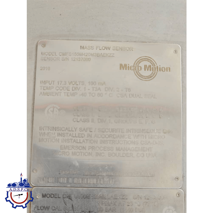 - تغذیه سنسور (نمونه لیبل): حدود 17.3VDC، 100mA (از ترانسمیتر Micro Motion)